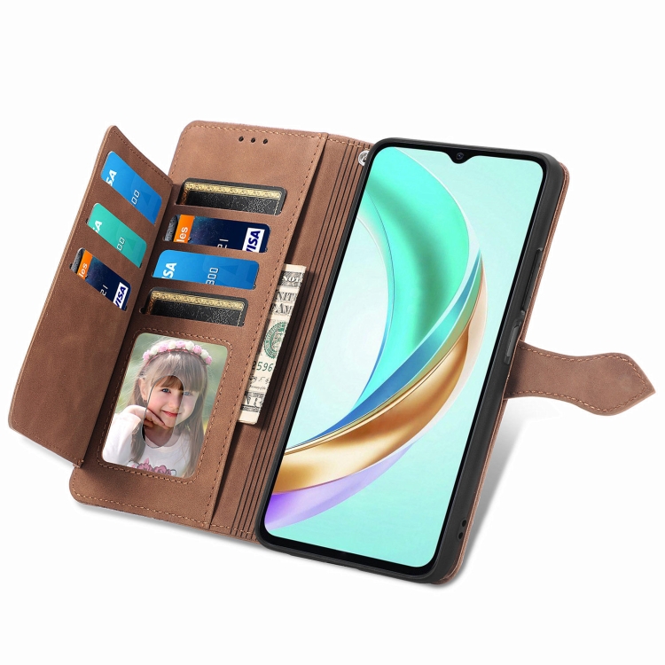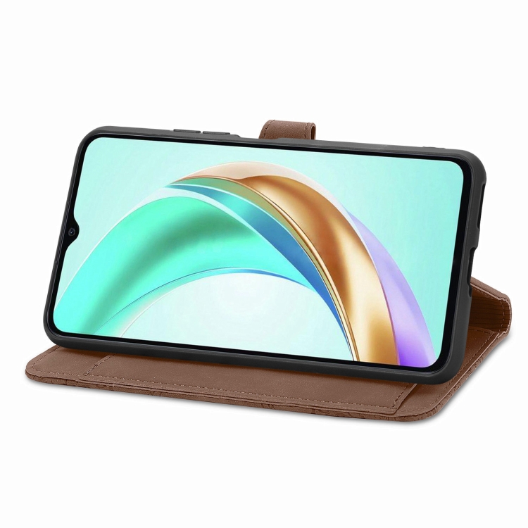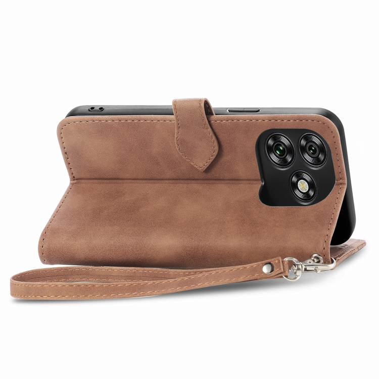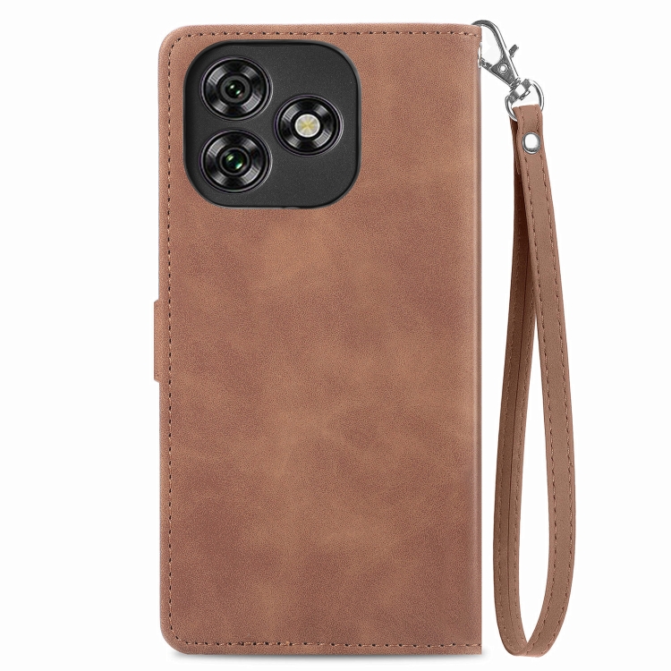Funda de Cuero con Cremallera y Flores en Relieve para Oukitel C53 (Marrón)