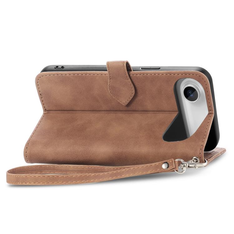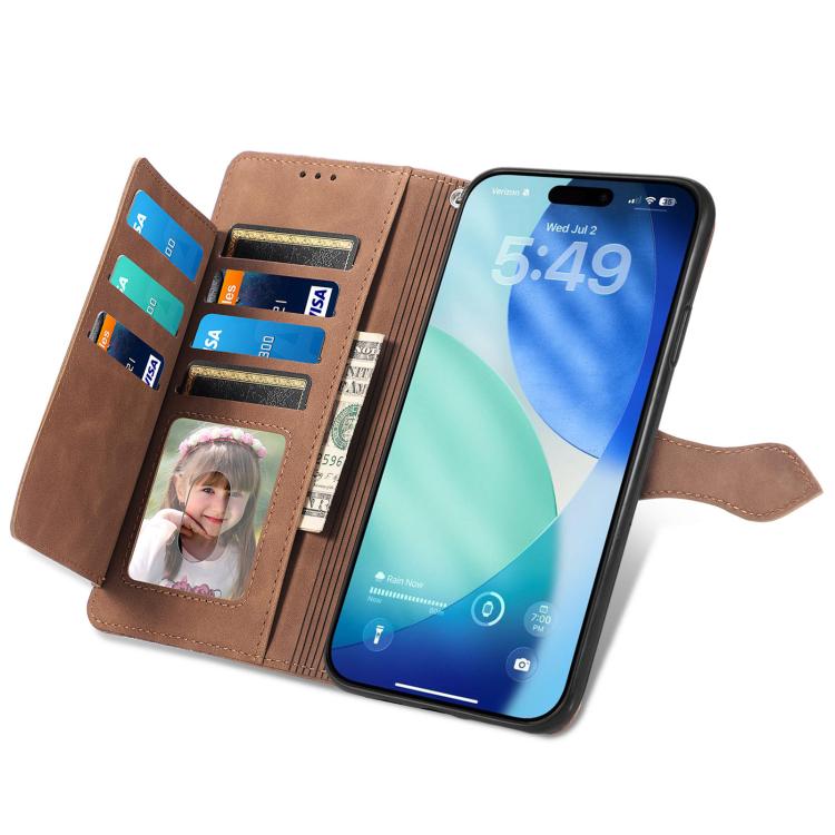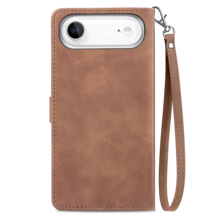 Funda de cuero con cremallera y diseño floral en relieve para iPhone Air (marrón)