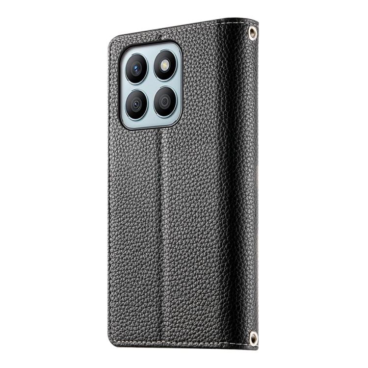 Funda de cuero con cremallera y múltiples tarjetas para Honor X8b, con costuras y correa corta (negra)