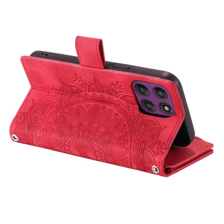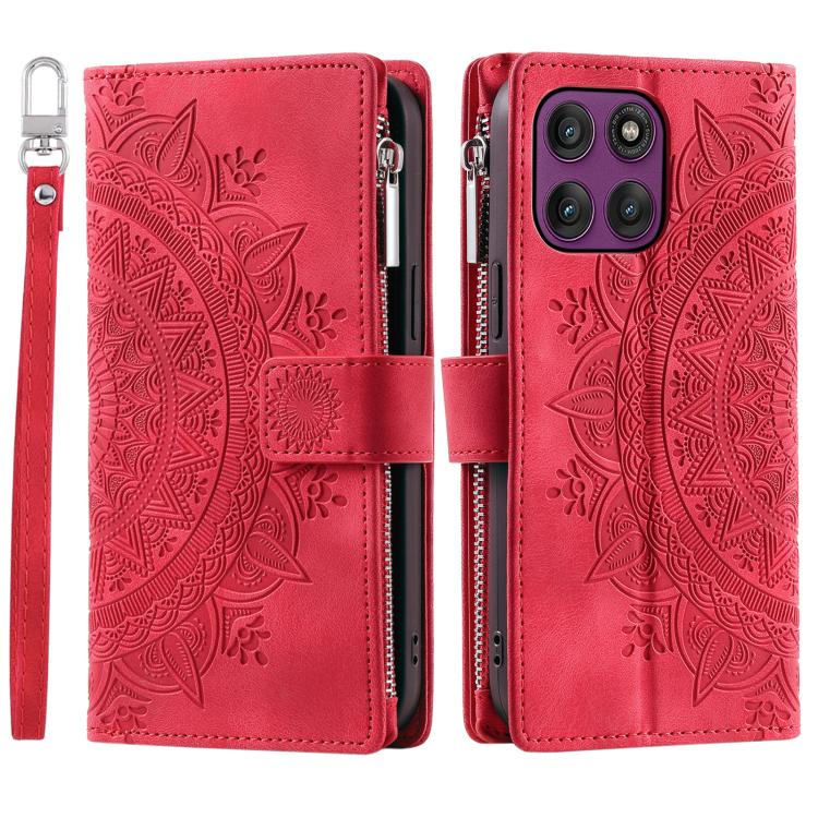 Funda de cuero con cremallera y múltiples tarjetas para Motorola Edge 60 Pro (roja)