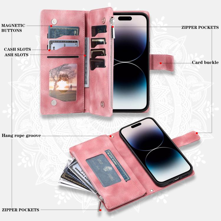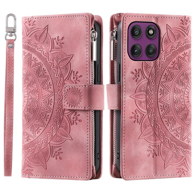 Funda de cuero con cremallera y múltiples tarjetas para Motorola Edge 60 Pro (rosa)