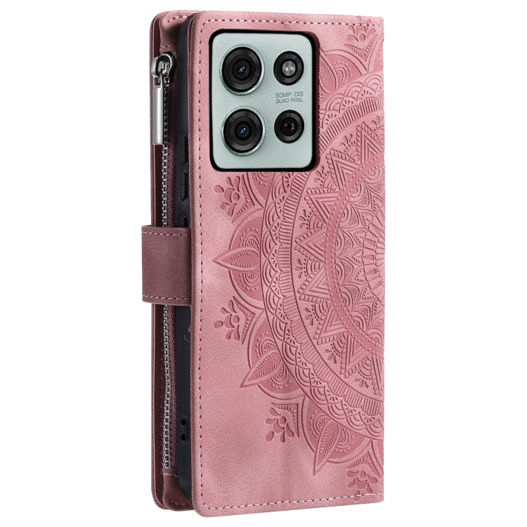 Funda de Cuero con Cremallera y Tarjetas para Motorola Moto G75 5G (Rosa)