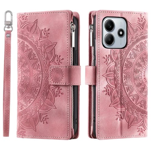 Funda de Cuero con Cremallera y Múltiples Tarjetas para Xiaomi Redmi Note 14 5G (Rosa)