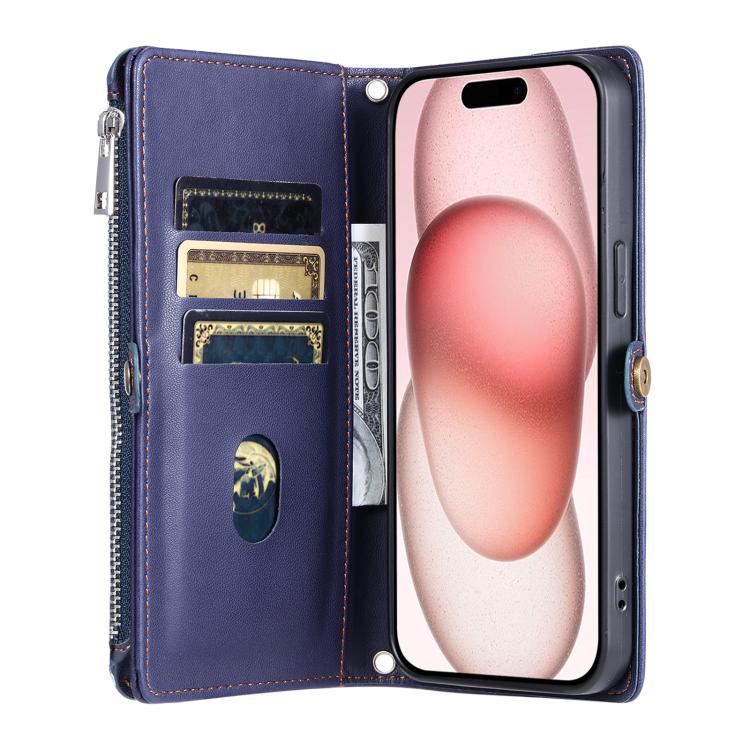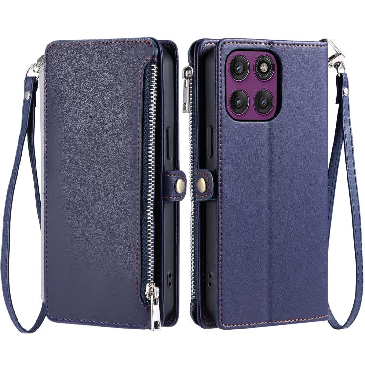 Funda de cuero con cremallera y ranura para múltiples tarjetas para Motorola Edge 60 Pro (azul)
