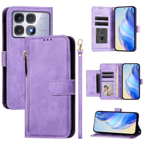Funda de Cuero con Cremallera y Ranuras para Múltiples Tarjetas para Redmi K70 Ultra 5G (Morado)