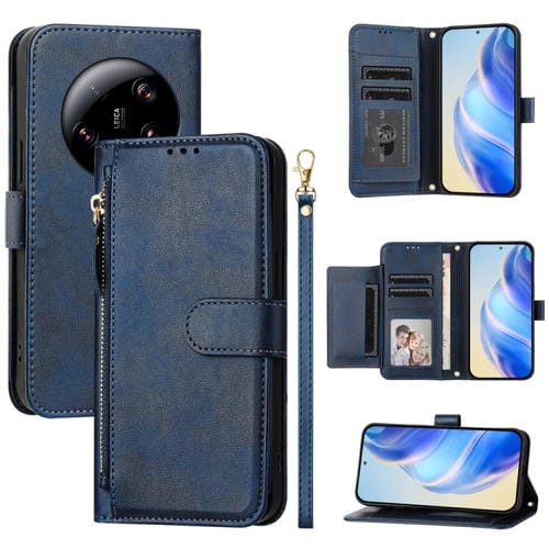 Funda de Cuero con Cremallera y Ranuras para Múltiples Tarjetas para Xiaomi 13 Ultra (Azul)