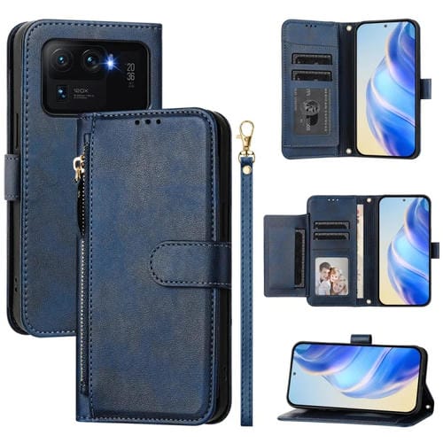 Funda de Cuero con Cremallera y Ranuras para Múltiples Tarjetas para Xiaomi Mi 11 Ultra (Azul)