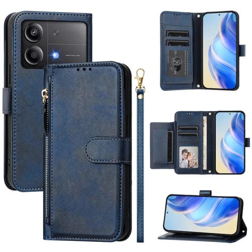 Funda de Cuero con Cremallera y Ranuras para Múltiples Tarjetas para Xiaomi Poco X6 Neo Global (Azul)