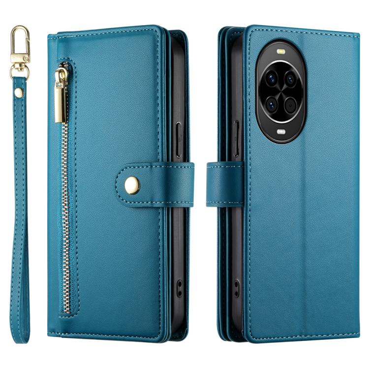 Funda de cuero con cremallera y ranuras para tarjetas para Huawei Nova 14 (azul)