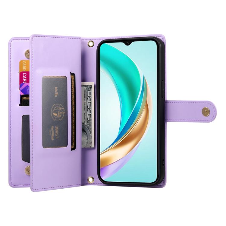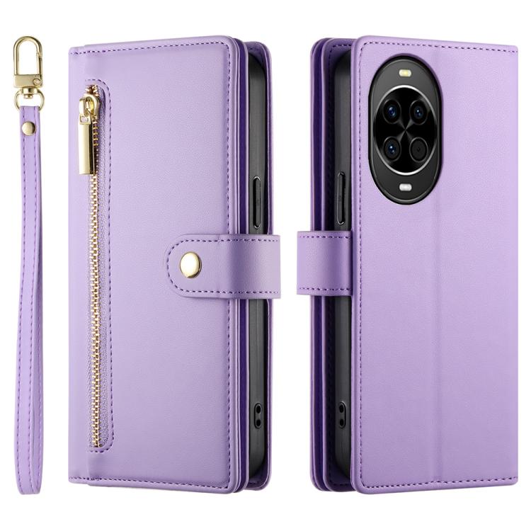 Funda de cuero con cremallera y ranuras para tarjetas para Huawei Nova 14 (morado)