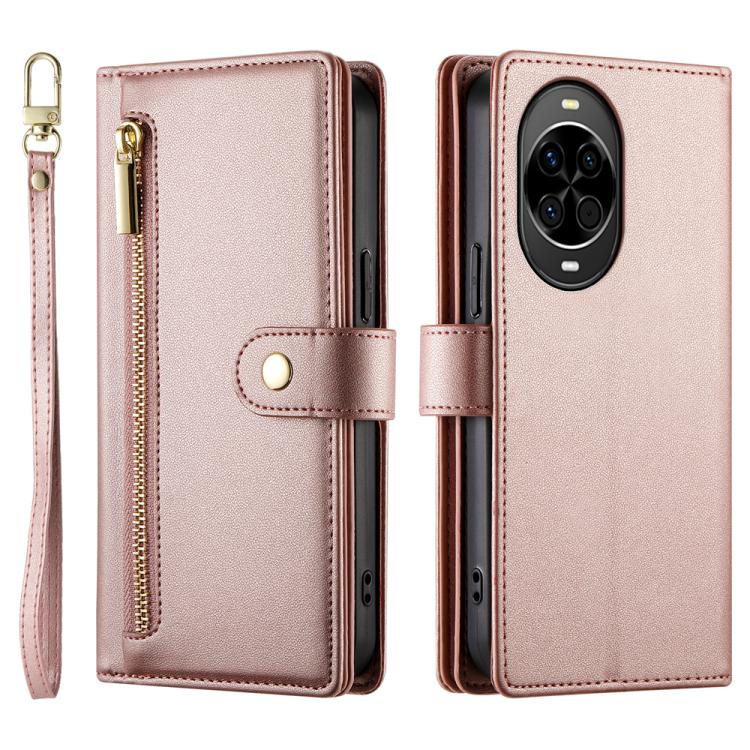 Funda de cuero con cremallera y ranuras para tarjetas para Huawei Nova 14 (rosa)