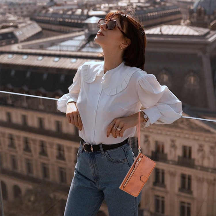 Funda de Cuero con Cremallera y Ranuras para Tarjetas para OnePlus 9 (Marrón)