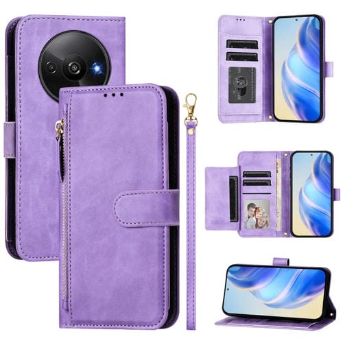 Funda de Cuero con Cremallera y Ranuras para Varias Tarjetas para Redmi A3 4G Global/A3X 4G (Morado)