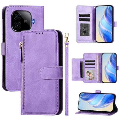 Funda de Cuero con Cremallera y Ranuras para Varias Tarjetas para Vivo Iqoo Z9/Z9 Turbo (Morado)