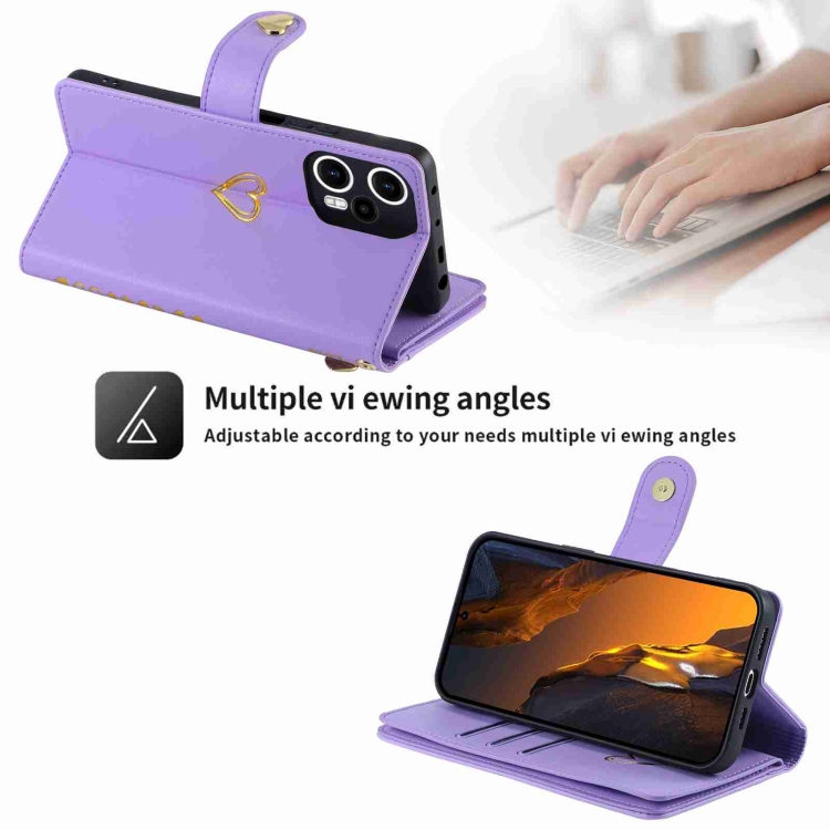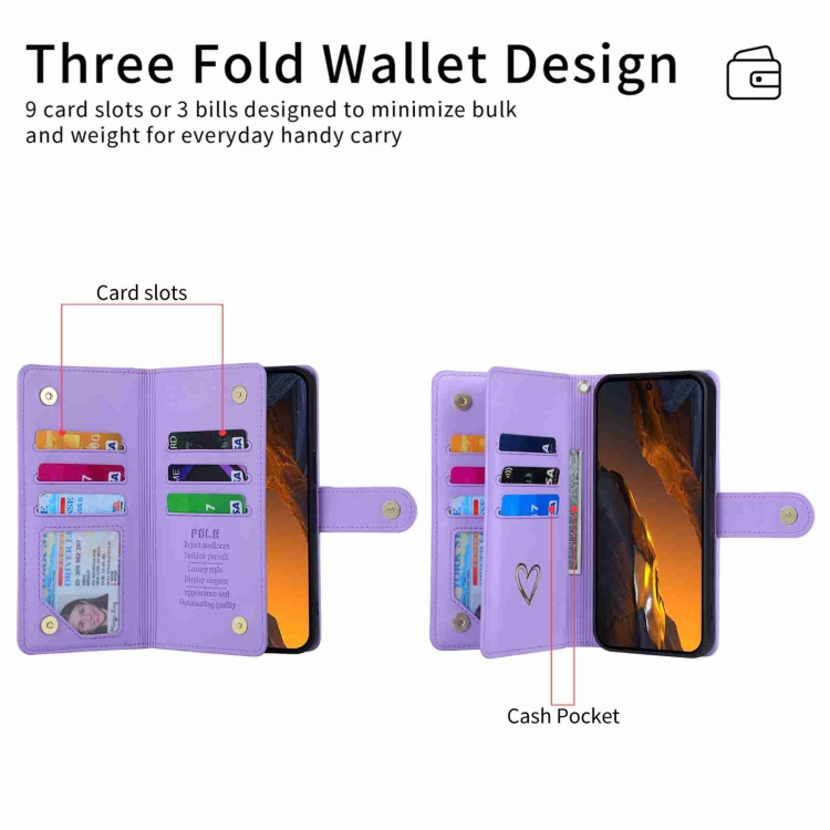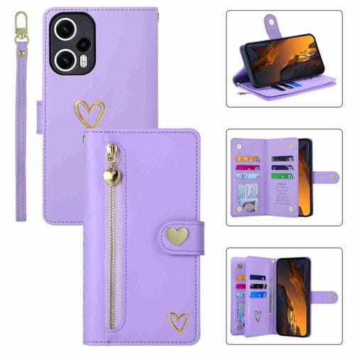 Funda de Cuero con Cremallera y Ranuras para Varias Tarjetas para Xiaomi Poco F5 Pola Love (Morado)
