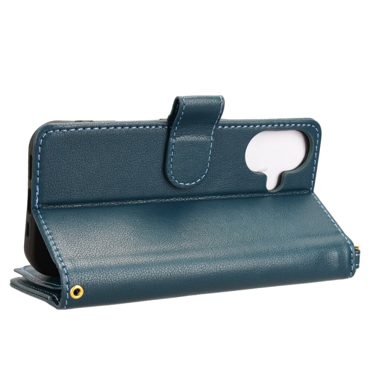 Funda de Cuero con Cremallera y Textura de Lichi para iPhone 16 (Verde)