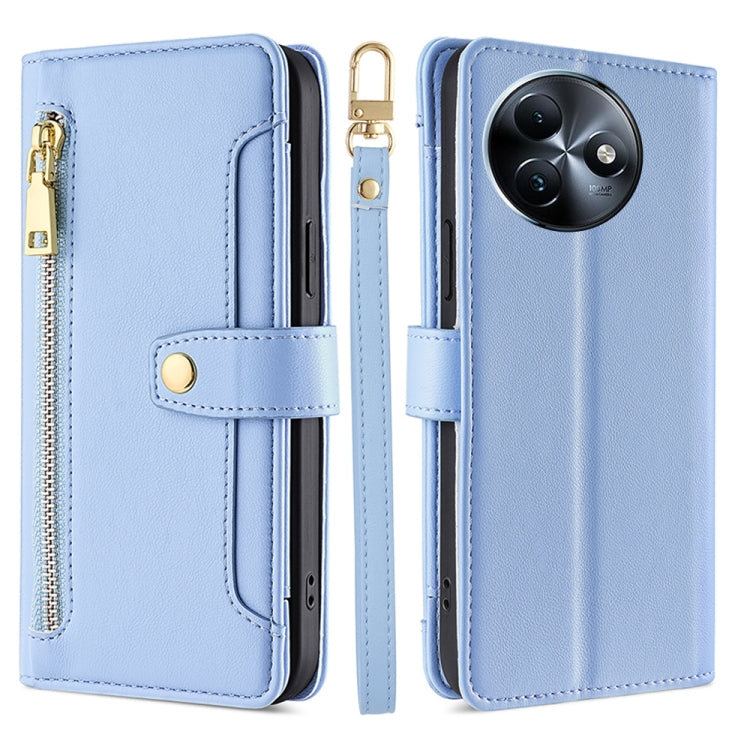 Funda de Cuero con Cremallera y Textura de Oveja para Itel S24 4G (Azul)
