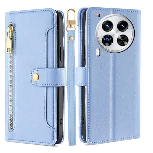 Funda de Cuero con Cremallera y Textura de Oveja para Tecno Camon 30 Premier 5G (Azul)