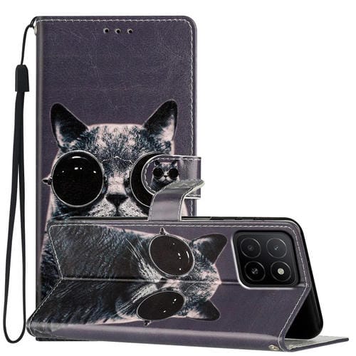 Funda de Cuero Honor X5B 4G con Dibujo a Color Gafas de Sol con Gato