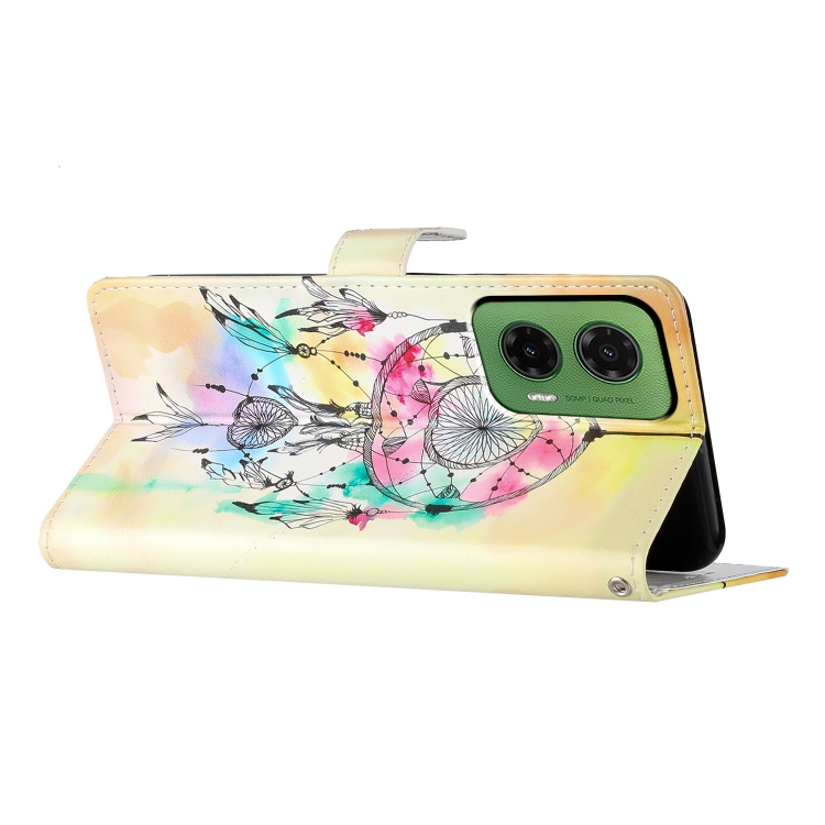 Funda de Cuero Motorola Moto G35 con Dibujo de Colores Atrapasueños