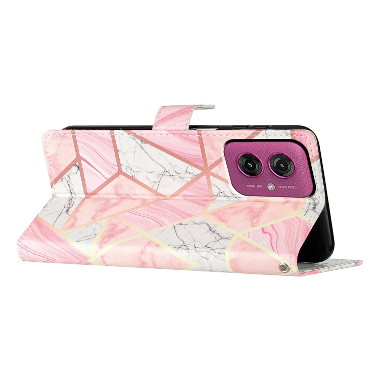 Funda de Cuero Motorola Moto G55 con Dibujo de Colores (Mármol Rosa)