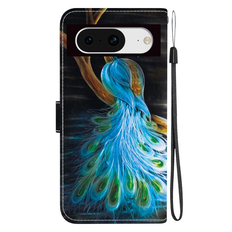 Funda de Cuero con Dibujo de Colores y Textura de Cristal para Google Pixel 8 (Pavo Real)