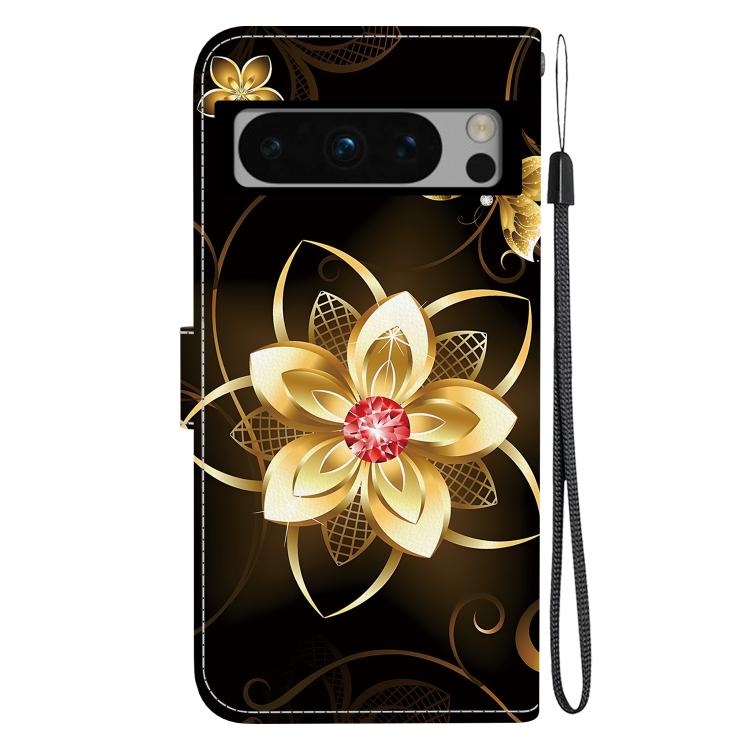 Funda de Cuero para Google Pixel 8 Pro con Dibujo de Colores y Textura de Cristal (Flor Dorada)