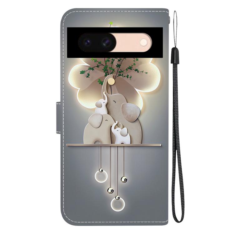 Funda de Cuero con Dibujo de Colores y Textura de Cristal para Google Pixel 8A (Elefantes)