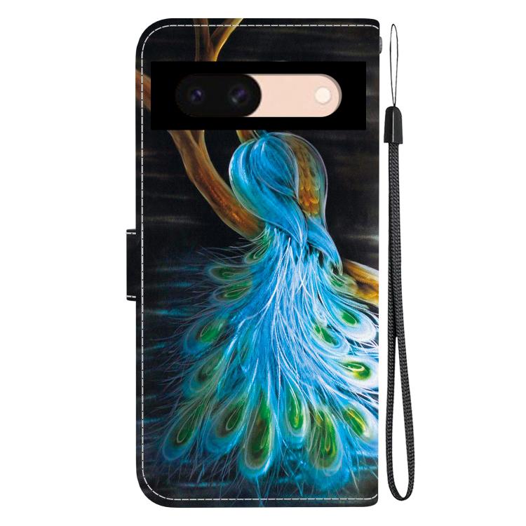 Funda de Cuero para Google Pixel 8A con Dibujo de Colores y Textura de Cristal (Pavo Real)