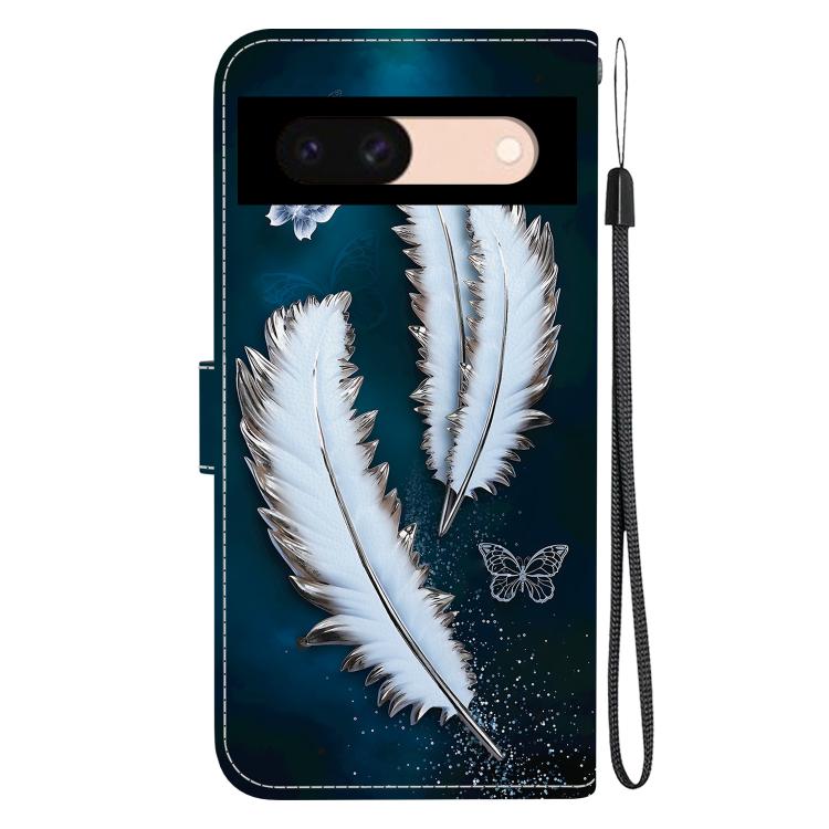 Funda de Cuero para Google Pixel 8A con Dibujo de Colores y Textura de Cristal (Plumas de Mariposa Blancas)
