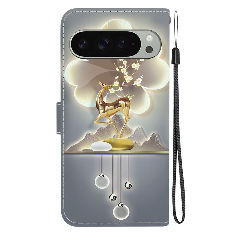 Funda de Cuero con Dibujo y Textura de Cristal para Google Pixel 9 y 9 Pro (Ciervo Sika)