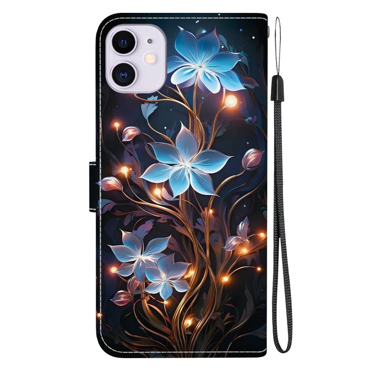 Funda de Cuero con Dibujo de Colores y Textura de Cristal para iPhone 11 (Flor de Linterna Pequeña)