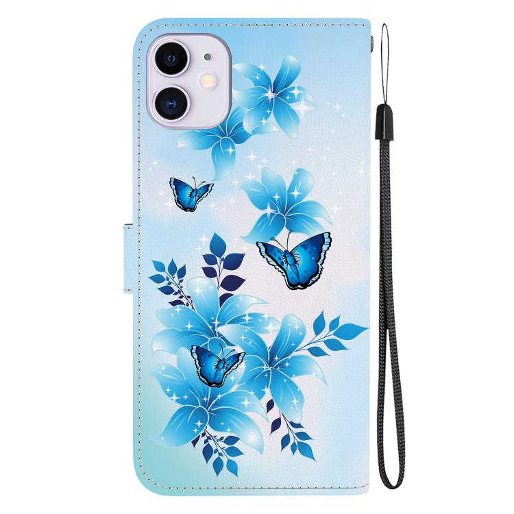 Funda de Cuero para iPhone 11 con Dibujo de Colores y Textura de Cristal (Mariposas Azules)