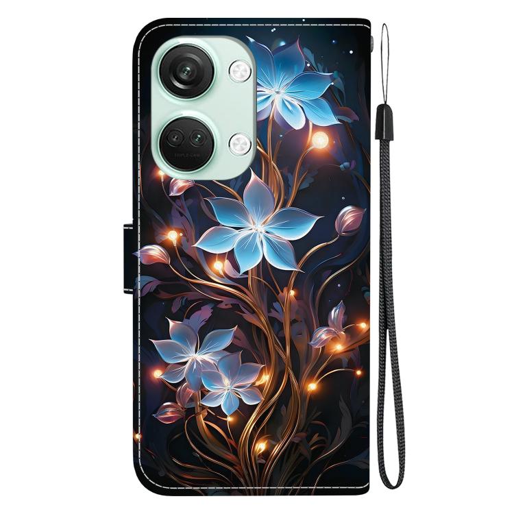 Funda de Cuero OnePlus Ace 2V 5G Nord 3 con Dibujo y Textura de Cristal (Flor de Linterna Pequeña)