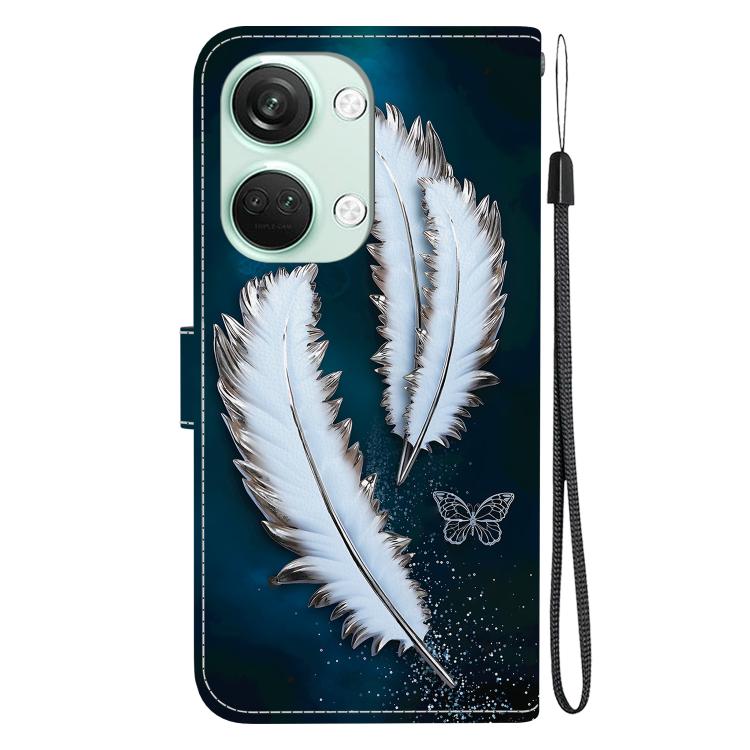 Funda de Cuero con Dibujo y Textura de Cristal para OnePlus Ace 2V 5G/Nord 3 (Plumas de Mariposa Blancas)