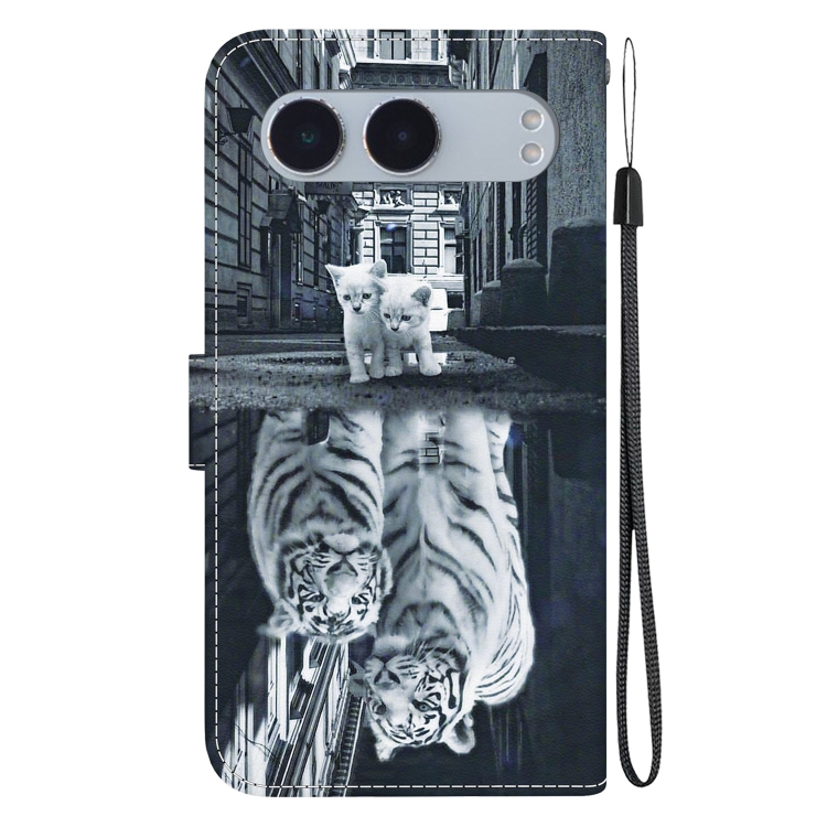 Funda de Cuero con Dibujo y Textura de Cristal para OnePlus Nord 4 (Reflejo de Tigre y Gato)