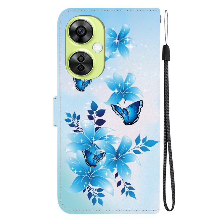 Funda de Cuero con Dibujo y Textura de Cristal para OnePlus Nord Ce 3 Lite/N30 (Mariposas Azules)