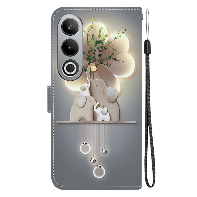 Funda de Cuero con Dibujo de Colores y Textura de Cristal para OnePlus Nord CE4 5G (Elefantes)
