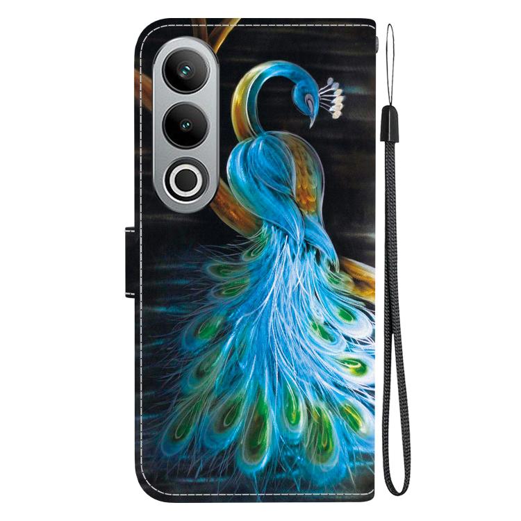 Funda de Cuero con Dibujo y Textura de Cristal para OnePlus Nord CE4 5G (Pavo Real)