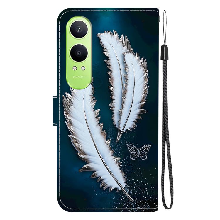 Funda de Cuero para OnePlus Nord Ce4 Lite con Dibujo de Colores y Textura de Cristal (Plumas de Mariposa Blancas)
