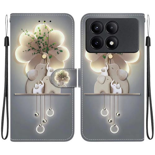 Funda de Cuero con Dibujo de Colores y Textura de Cristal para Redmi K70E/Poco X6 Pro (Elefantes)