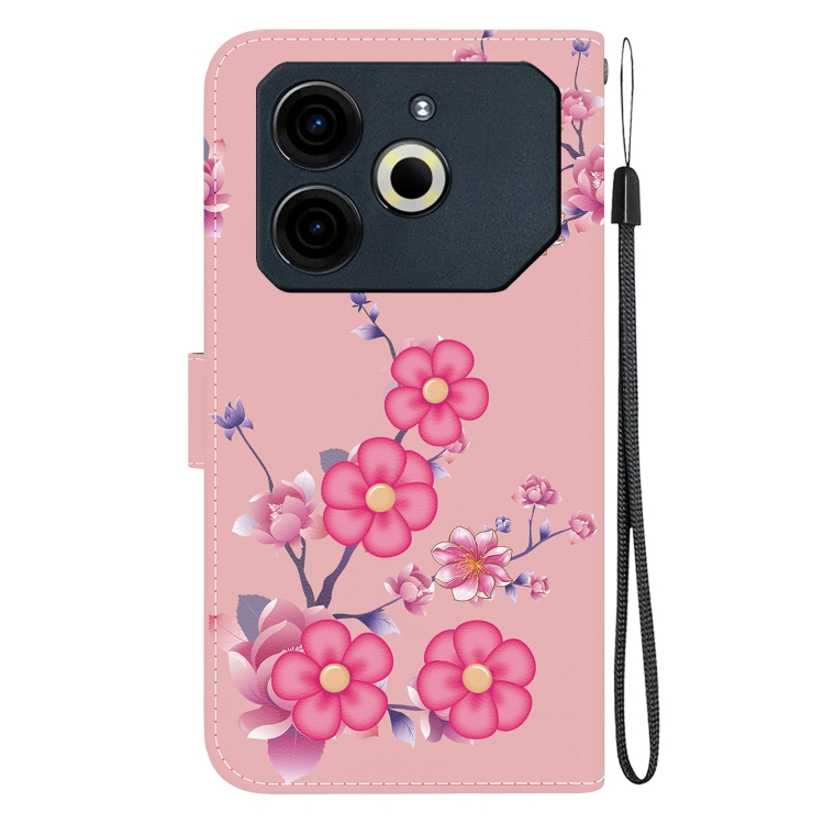 Funda de Cuero para Tecno Pova 6 Neo con Dibujo de Flores de Cerezo y Textura de Cristal