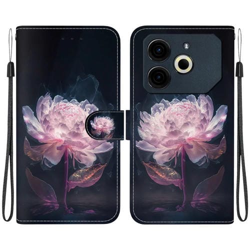 Funda de Cuero con Dibujo y Textura de Cristal para Tecno Pova 6 Neo (Peonía Morada)