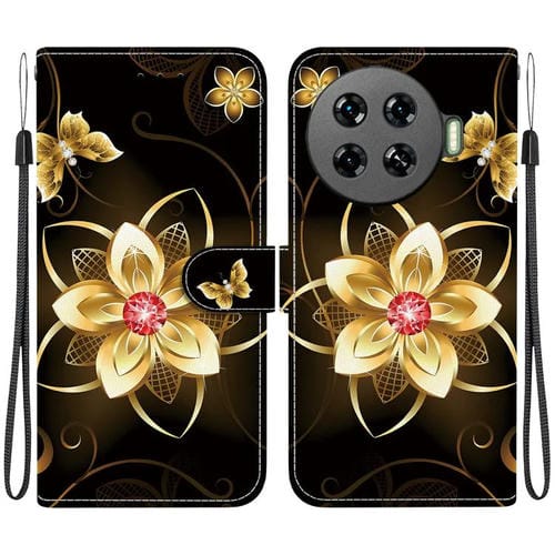 Funda de Cuero para Tecno Spark 20 Pro+ 4G con Dibujo de Colores y Textura de Cristal (Flor Dorada)