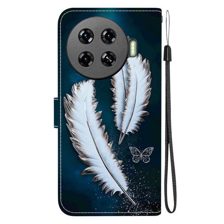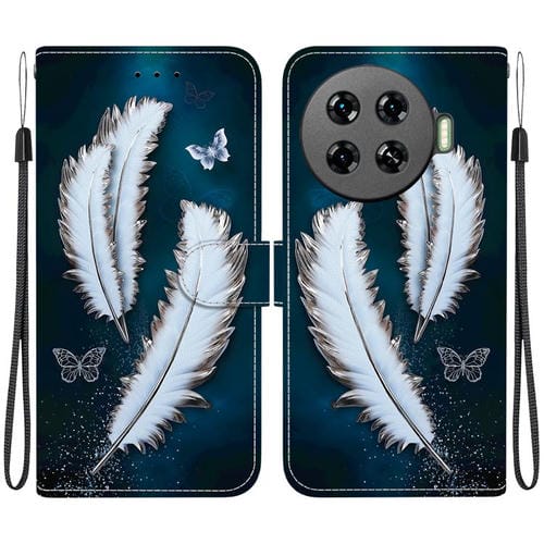 Funda de Cuero para Tecno Spark 20 Pro+ 4G con Dibujo de Colores y Textura de Cristal (Plumas de Mariposa Blancas)