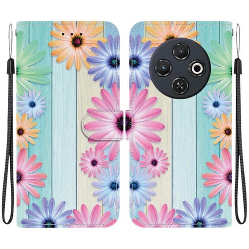 Funda de Cuero para Tecno Spark 30C con Dibujo de Colores y Textura de Cristal (Girasoles)