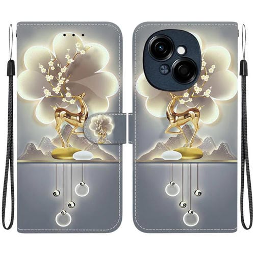 Funda de Cuero para Tecno Spark Go 1 y Pop 9 Pro con Dibujo de Colores y Textura de Cristal (Ciervo Sika)