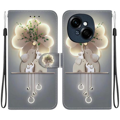 Funda de Cuero con Dibujo de Colores y Textura de Cristal para Tecno Spark Go 1/Pop 9 Pro (Elefantes)