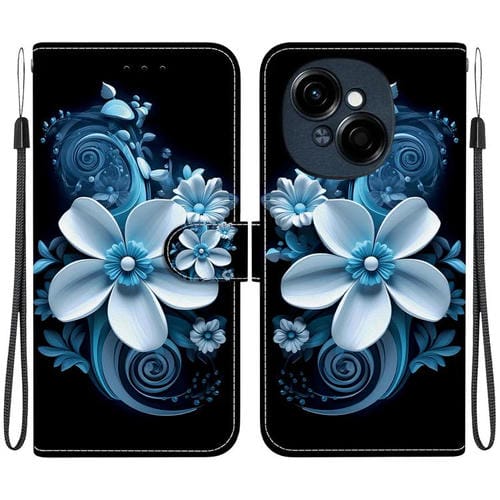 Funda de Cuero para Tecno Spark Go 1 y Pop 9 Pro con Dibujo de Colores y Textura Cristal (Orquídea Negra)