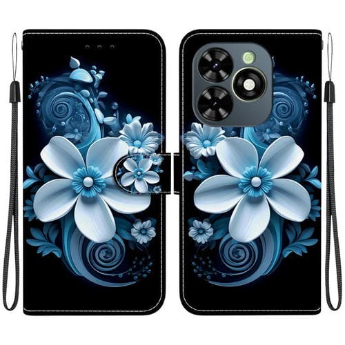 Funda de Cuero para Tecno Spark Go 2024/20C/Pop 8 con Dibujo de Colores y Textura de Cristal (Orquídea Negra)